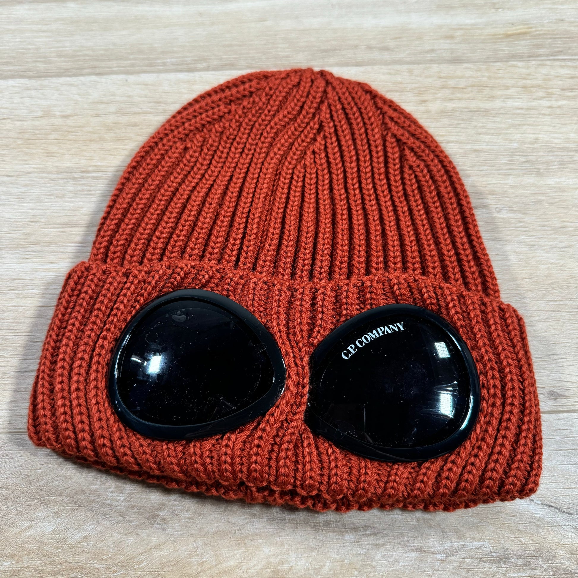 CP Company Extra Fine Merino Wool Goggle Beanie in Bombay Brown