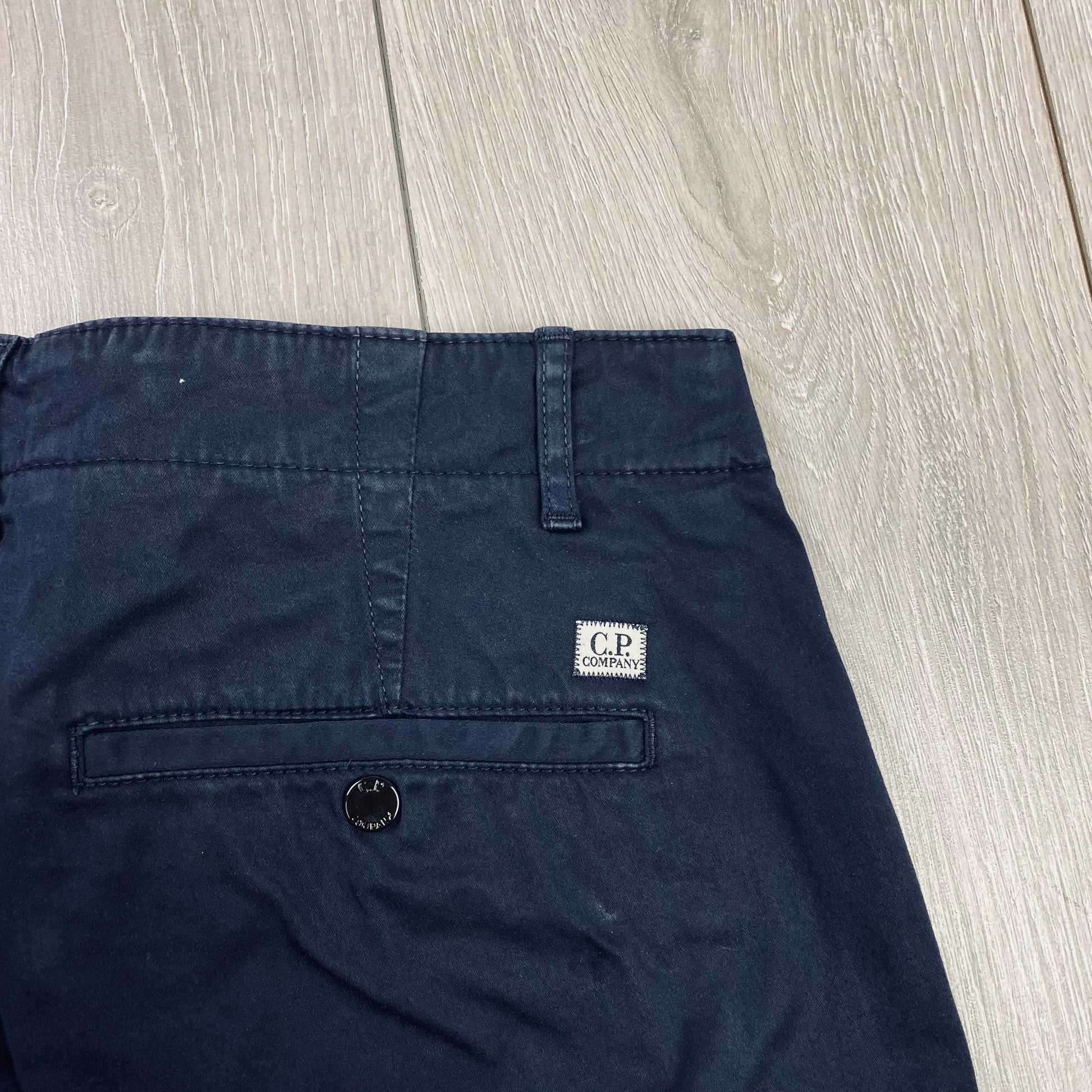 Total Eclipse navy blue CP Company garment dyed Bermuda cargo shorts with knee lens