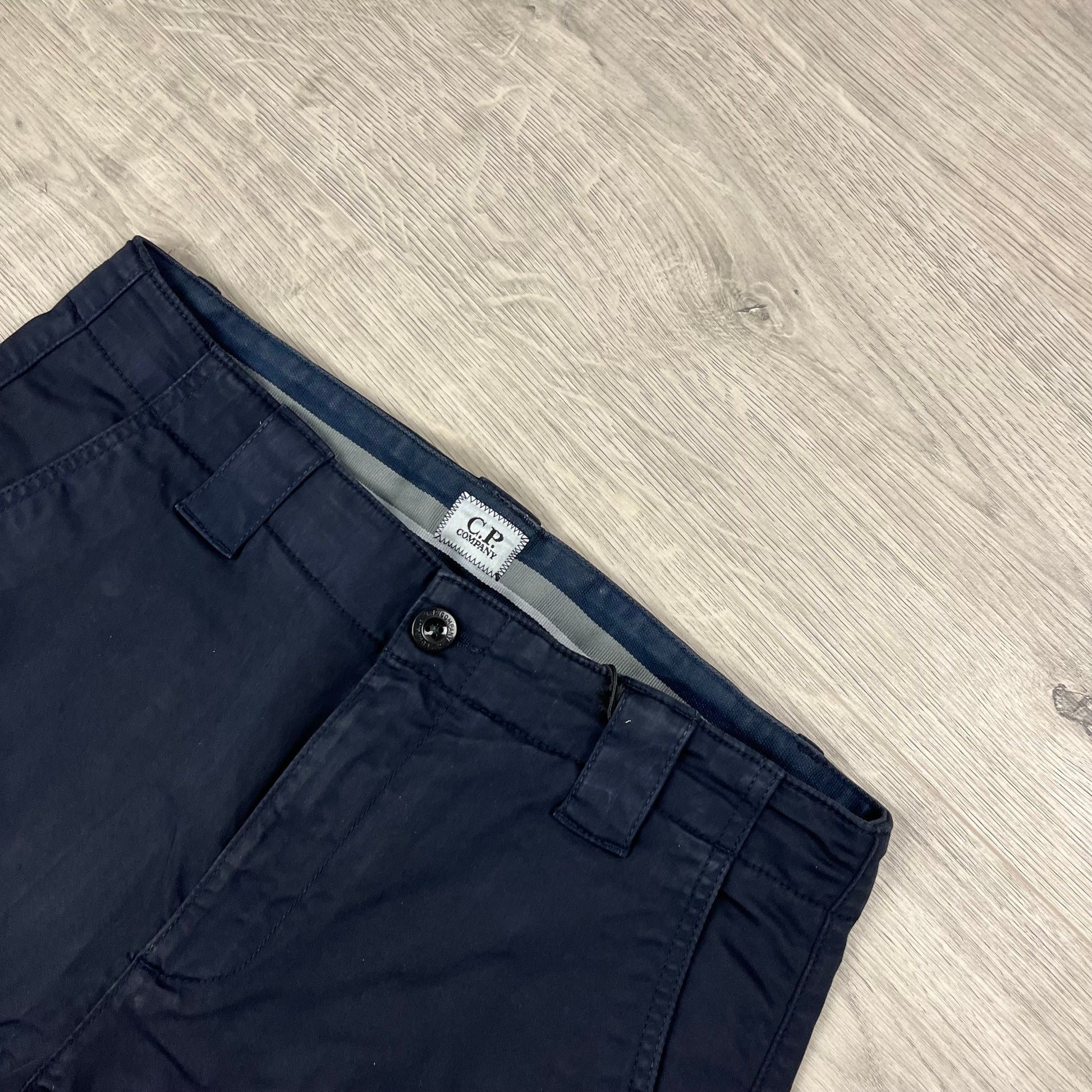 Total Eclipse navy blue CP Company garment dyed Bermuda cargo shorts with knee lens