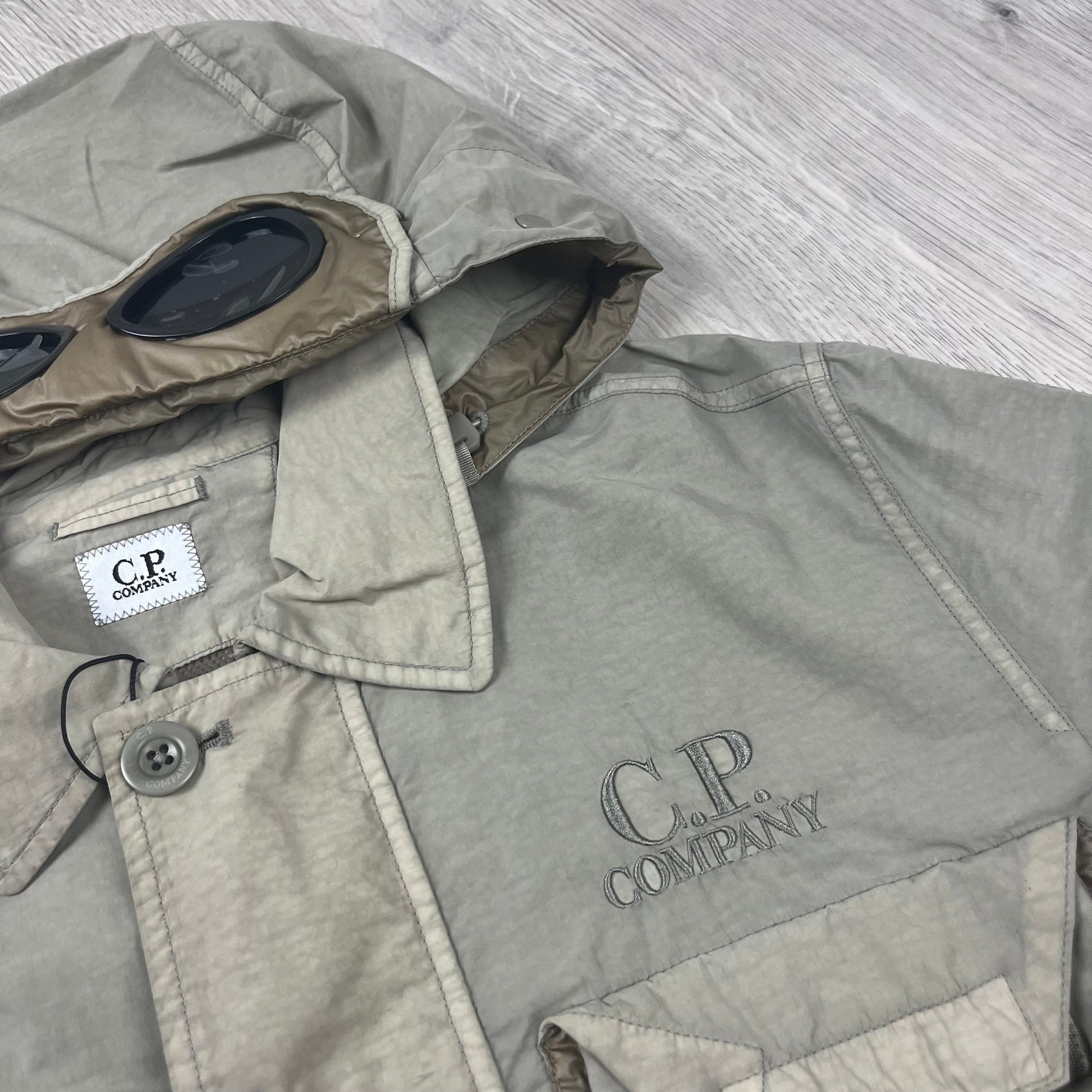 A modern icon from CP Company, the Goggle Overshirt in Vintage Khaki blends utilitarian function with signature Italian design. Crafted from Flatt Nylon — a quick-drying, garment-dyed fabric — it offers a rich, textured finish. Designed for versatility, it features a full zip, chest flap pocket, and the brand’s unmistakable goggle hood. Lightweight and technical, it's ideal for layering across seasons.