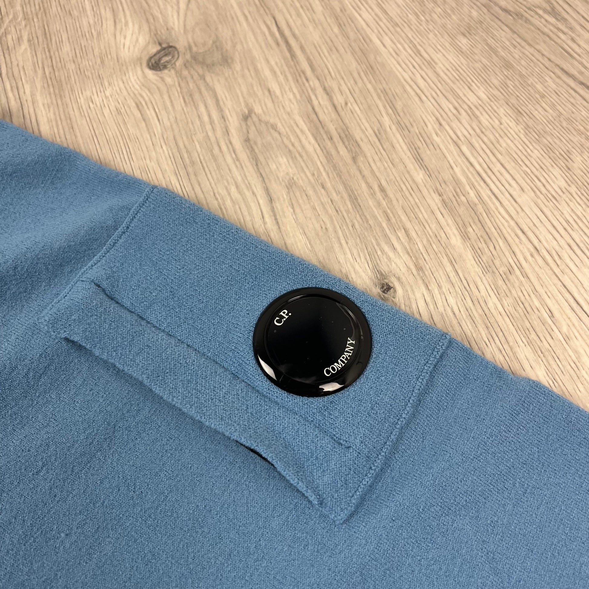 Aegean Blue CP Company Merino Wool crewneck sweatshirt with sleeve lens