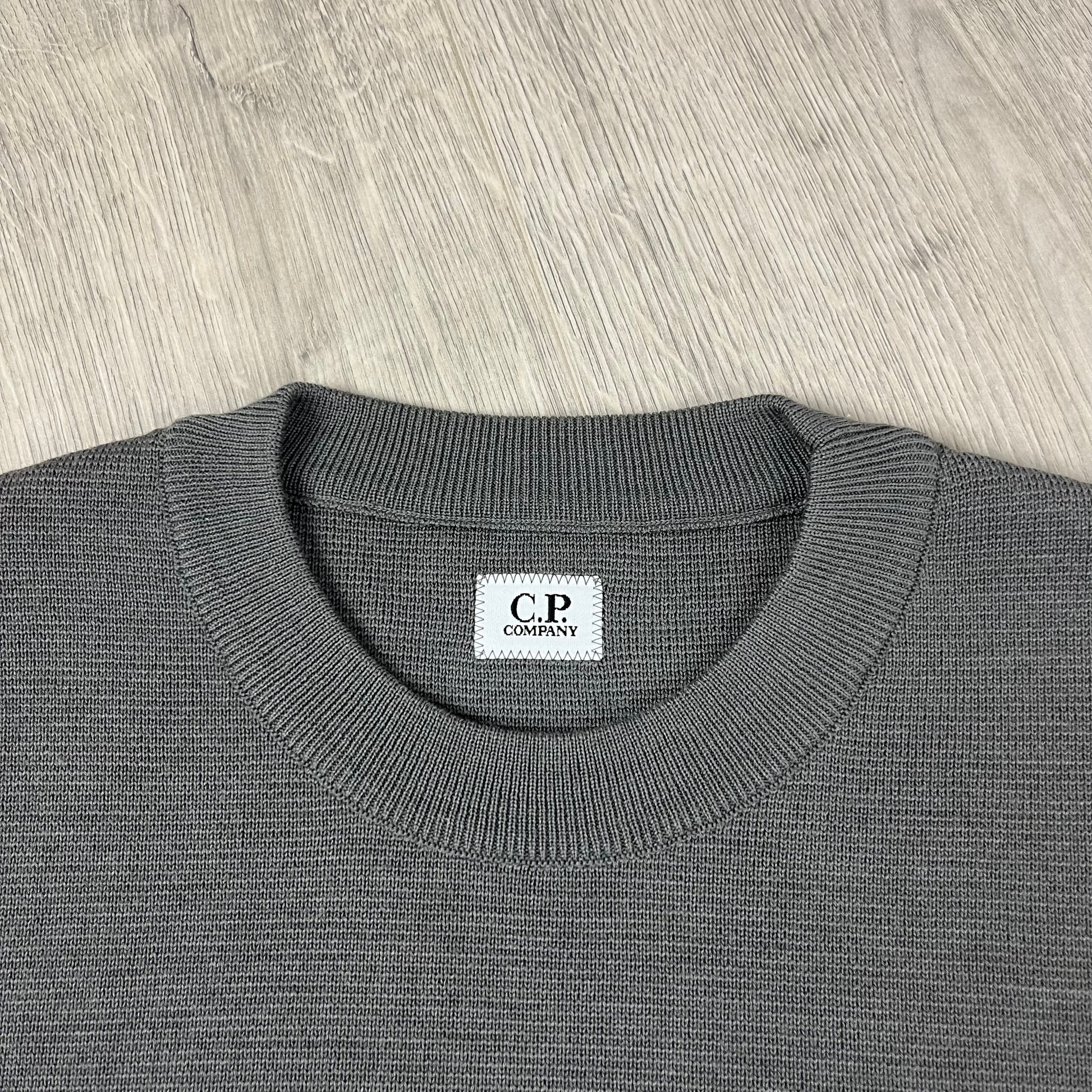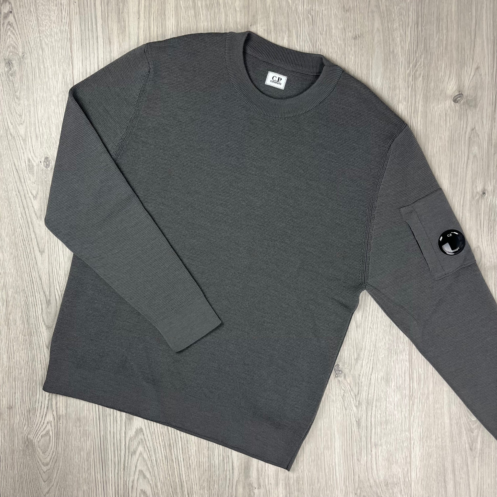 Gunmetal CP Company re-wool knit sweatshirt with sleeve lens