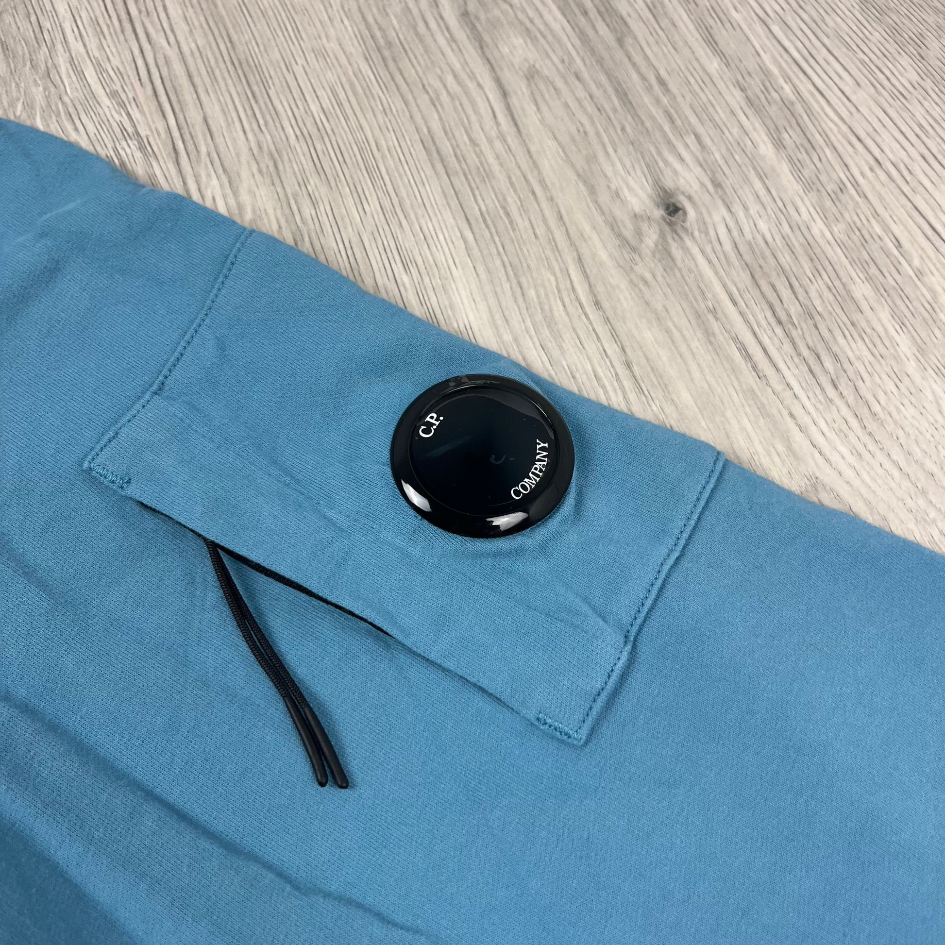 Aegean Blue CP Company Light Fleece Zip Hoodie with sleeve lens