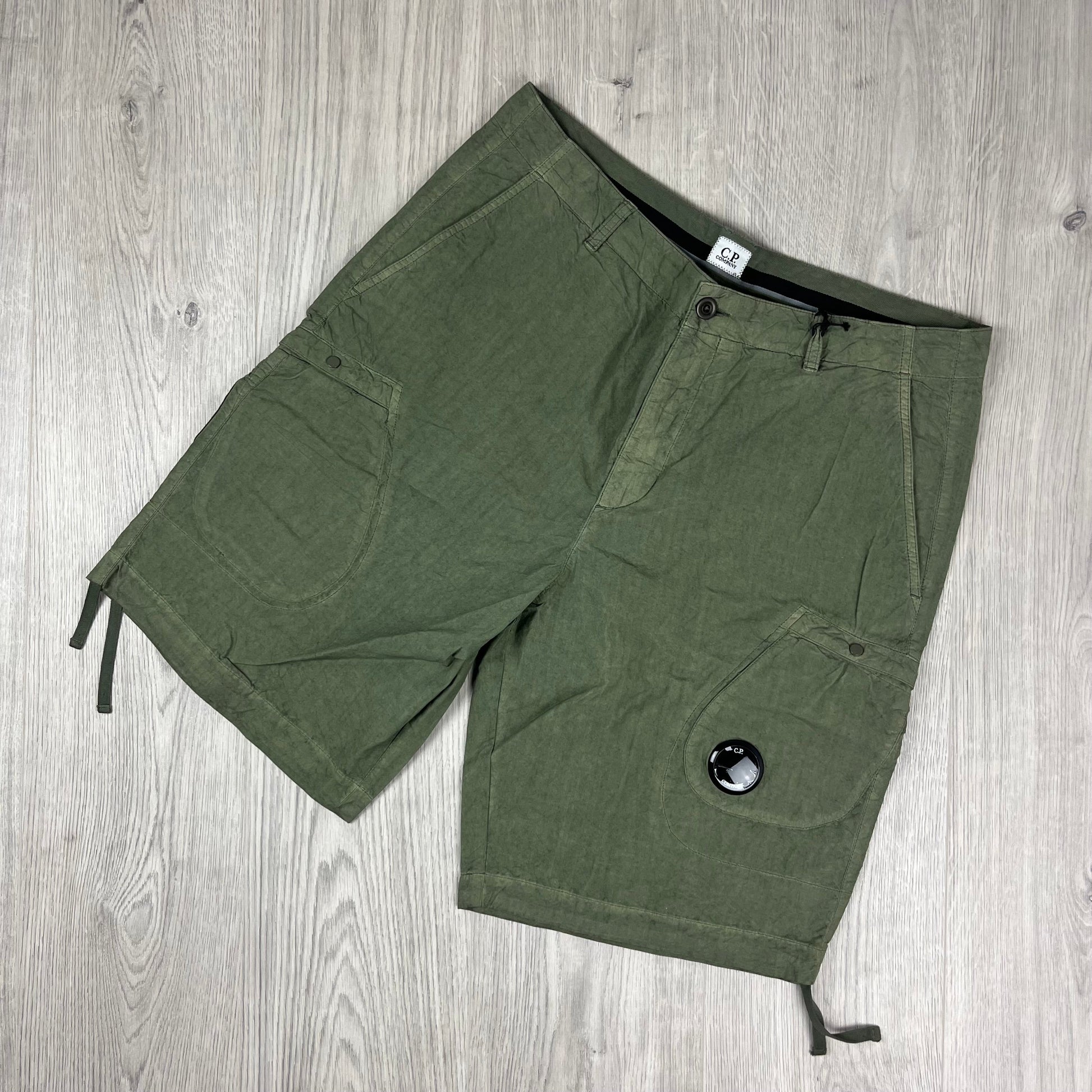 Bronze Green CP Company Ba-Tic cargo shorts with knee lens