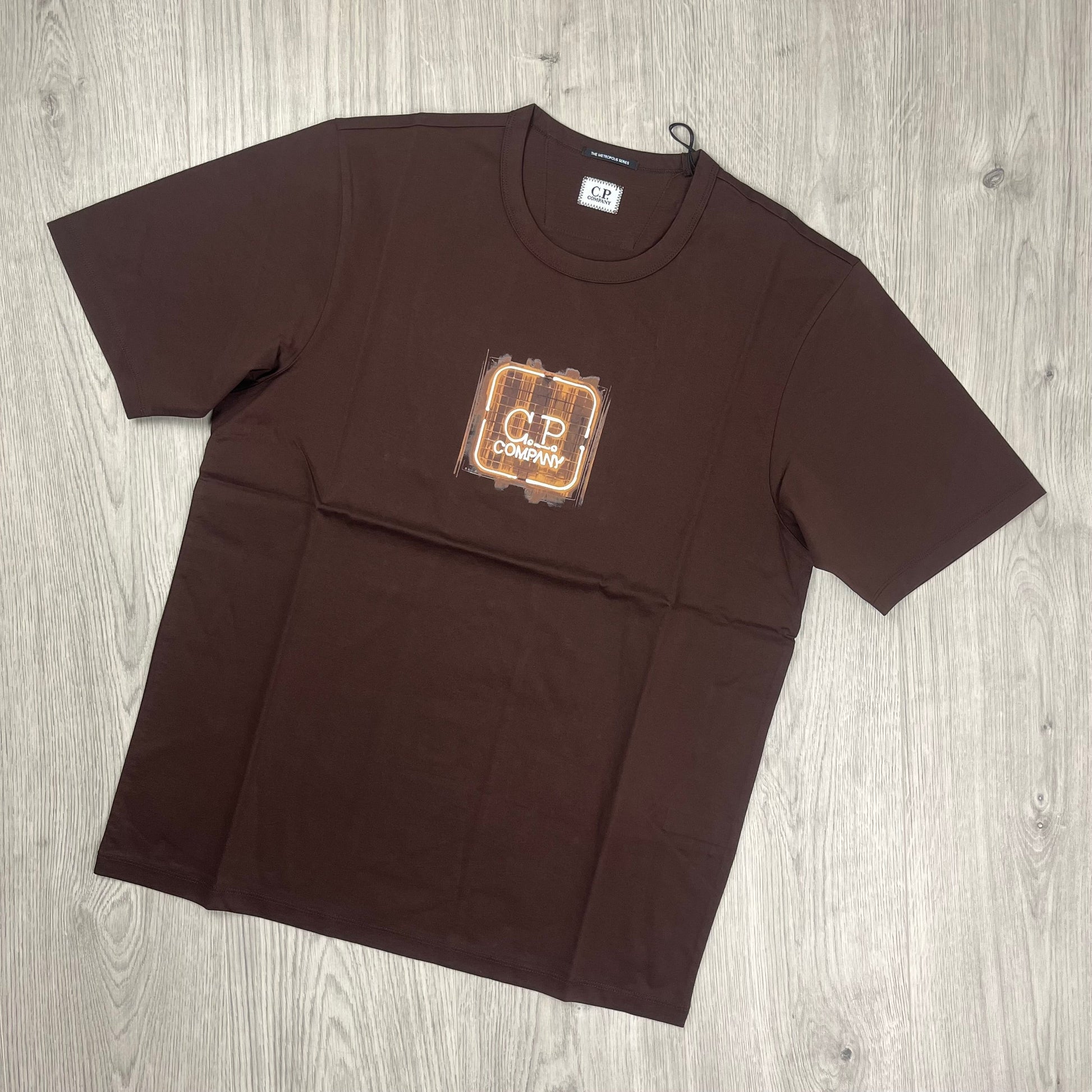 Rum Raisin CP Company Metropolis T-shirt with orange neon centrally printed logo on the chest