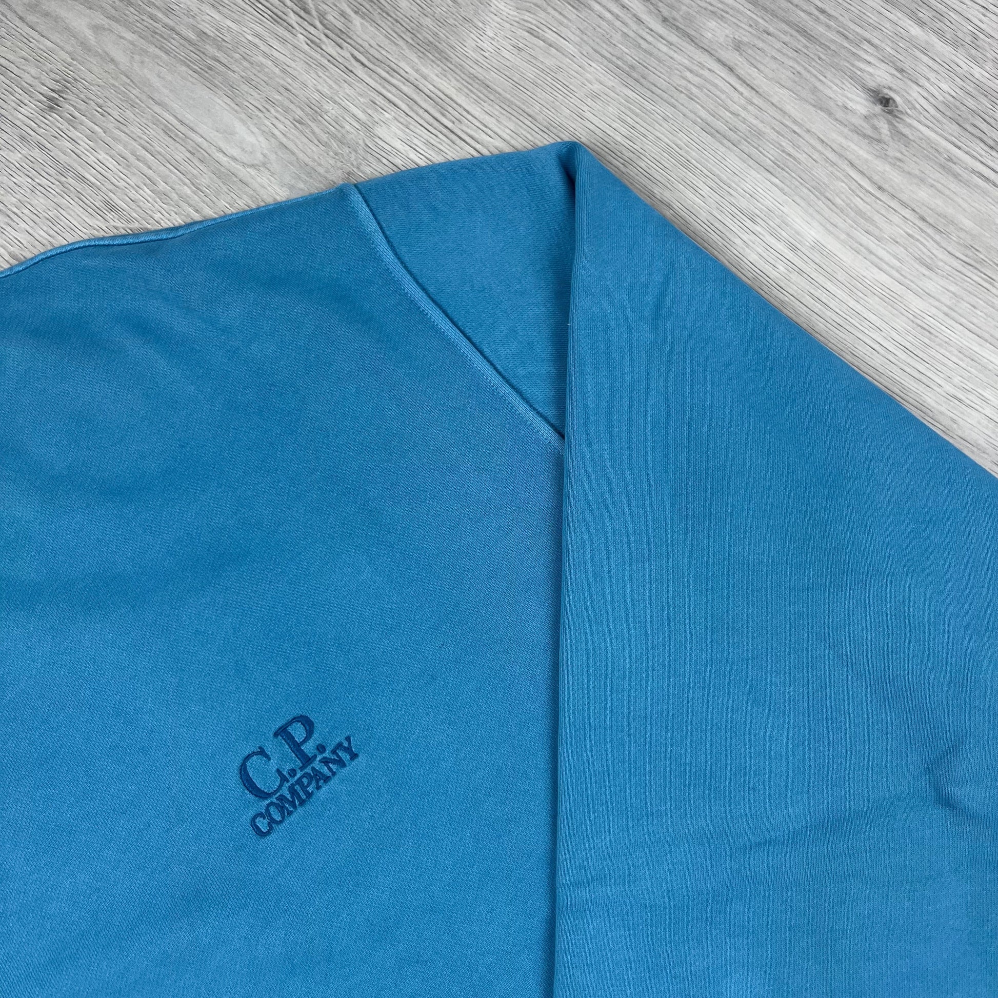 Aegean Blue CP Company Brushed & Emerized Diagonal Fleece Sweatshirt with embroidered patch logo