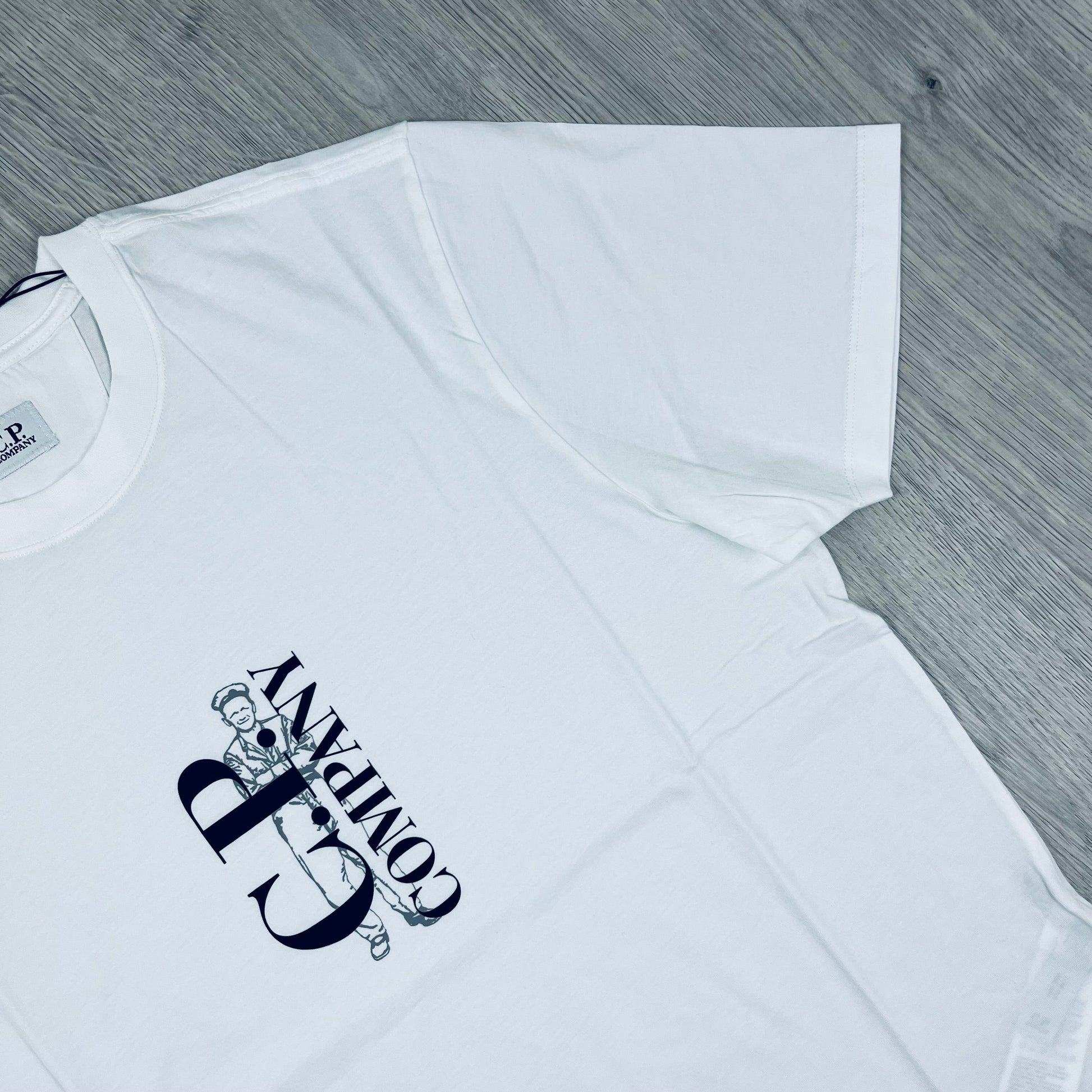Gauze White CP Company T-shirt with centrally printed vertical logo in white with British sailor