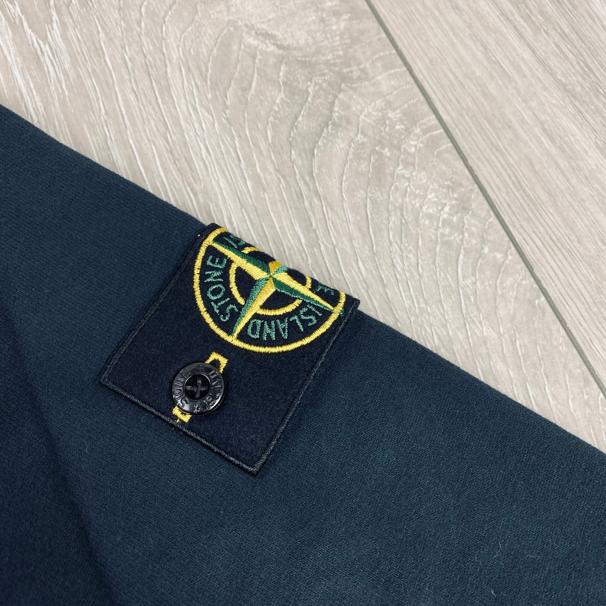 Brushed cotton navy blue Stone Island pull-over hoodie with sleeve badge logo