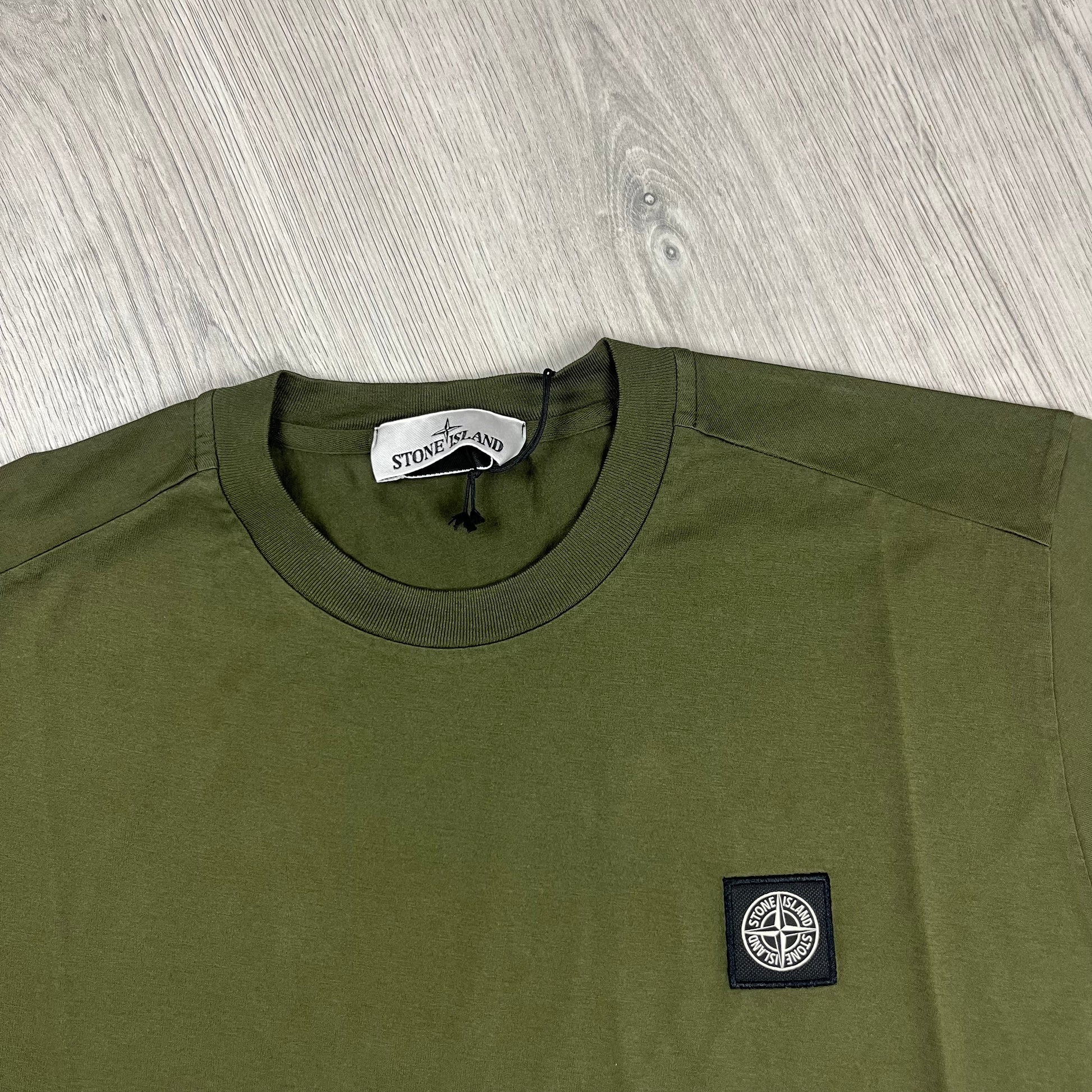 Men’s Stone Island T-shirt in Olive Green with patch logo on the chest