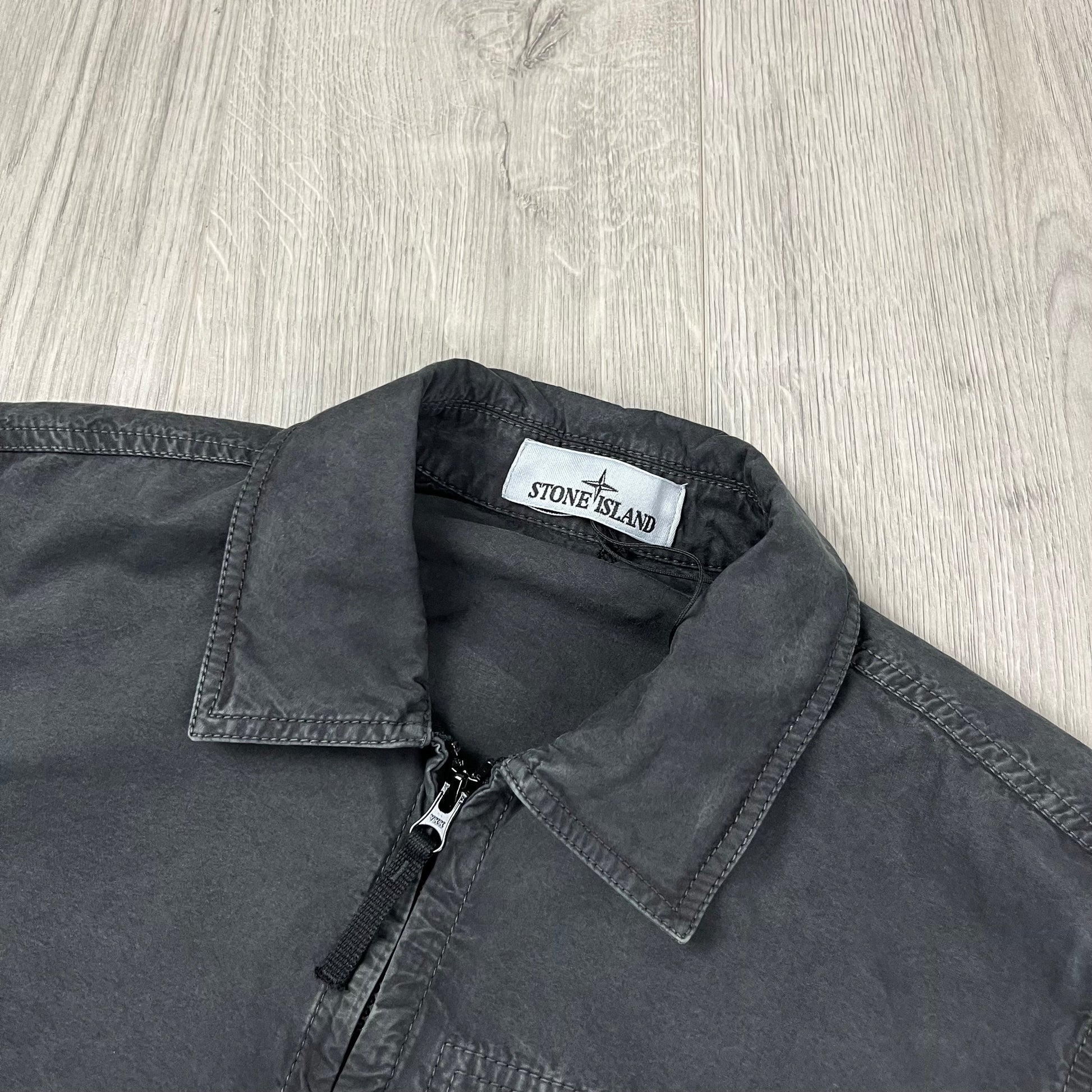 Men’s Stone Island Supima overshirt in Charcoal with sleeve badge and a single pockets
