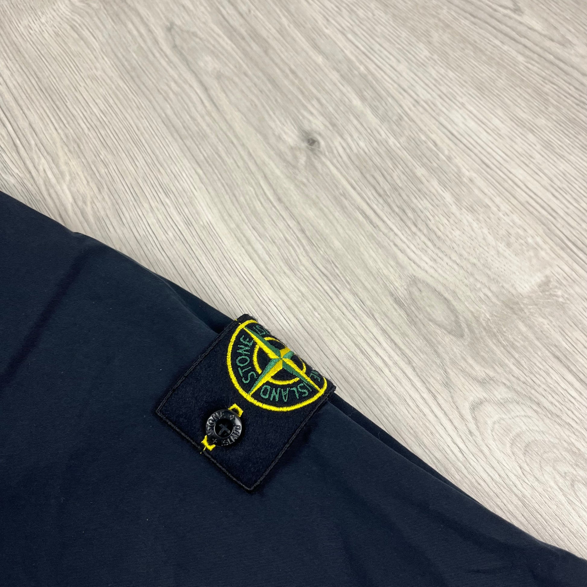 Men’s Stone Island garment dyed Supima cotton overshirt in Navy Blue with sleeve badge and duel pockets